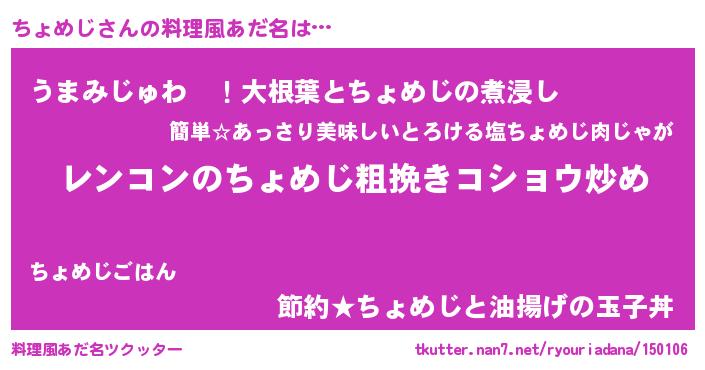 | 胡散臭い通販商品みたいなあだ名 | 『テレビで話題の高麗人参…その名も「ちょめじ」』 |