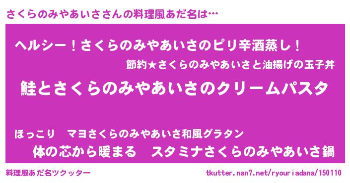 | 胡散臭い通販商品みたいなあだ名 | 『モンドセレクションを受賞した隕石のかけら…その名も「さくらのみやあいさ」』 |
