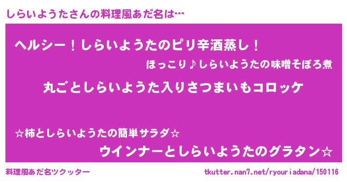 | ヒーロー風カッコイイあだ名 | 『仮面シラダー』『最強戦士シライヨウタ』 |