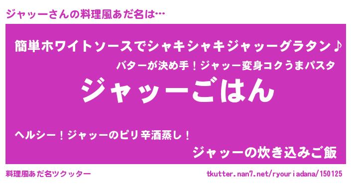 | 意味不明あだ名 | 『めかぶ科ジャッー属』『自称ジャッー』 |