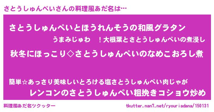 | 胡散臭い通販商品みたいなあだ名 | 『芸能人もオススメする冬虫夏草…その名も「さとうしゅんぺい」』 |