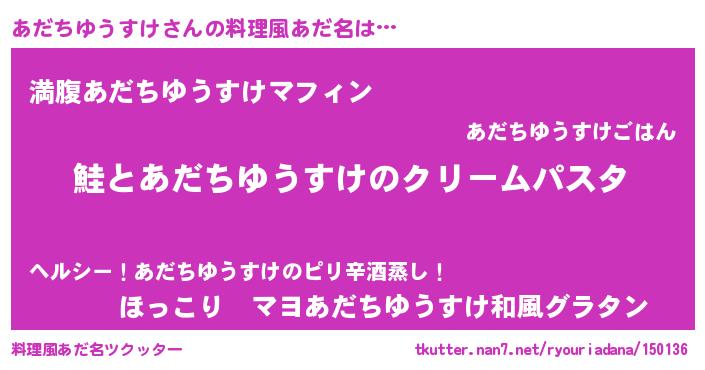| 男性向けラノベタイトル風あだ名 | 『ノーゲーム・ノーアダチユウスケ』 |