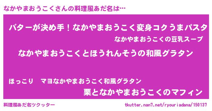 | ヘコむあだ名 | 『なかぷりん』『なまこ酢』 |