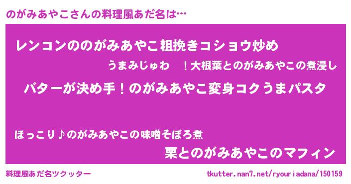 | ヘコむあだ名 | 『豆乳』『のがにゅー』『のがぷりん』 |