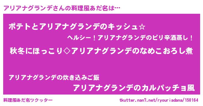 | ポケモン風あだ名 | 『アリゴンZ』『ヒアリアナグランデ』 |