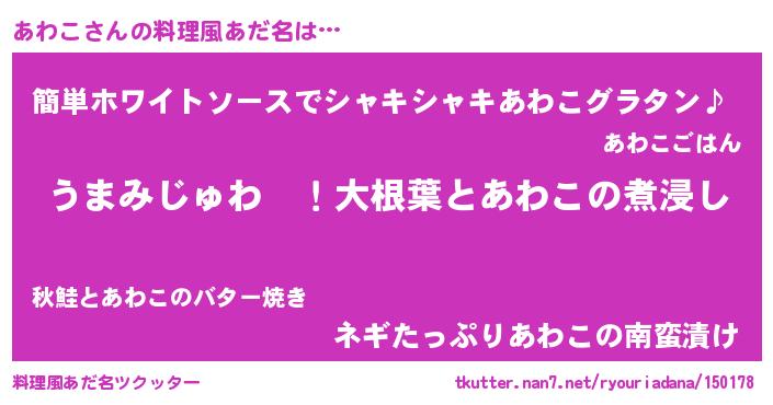 | ヒーロー風カッコイイあだ名 | 『ウルトラあわこマン』『天弓騎士アワ』 |
