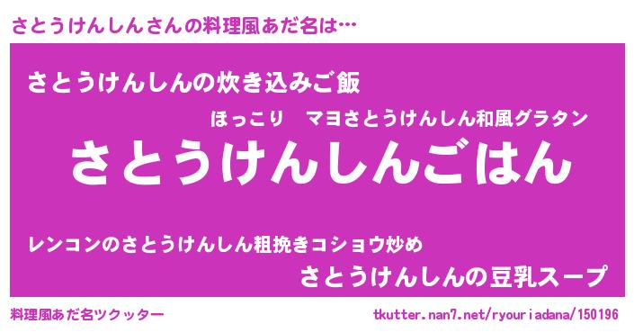 | 胡散臭い通販商品みたいなあだ名 | 『信頼と実績のサプリメント…その名も「さとうけんしん」』 |