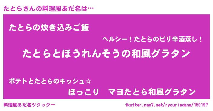 | 意味不明あだ名 | 『なめこ科たとら属』『自称たとら』 |