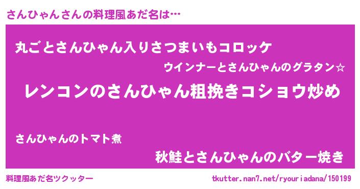 | 胡散臭い通販商品みたいなあだ名 | 『ガンによく効く高麗人参…その名も「さんひゃん」』 |