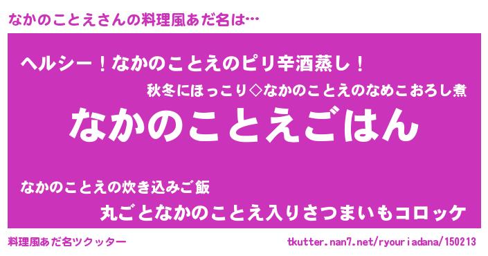 | 意味不明あだ名 | 『めかぶ科なかのことえ属』 |