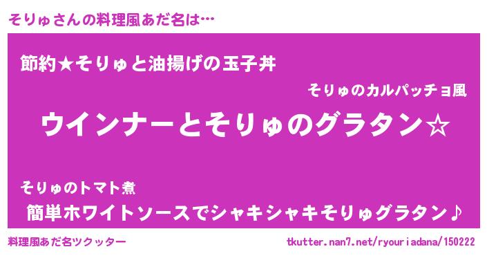 | 意味不明あだ名 | 『そりゅフォーエバー』『ペロリンそりゅ』 |