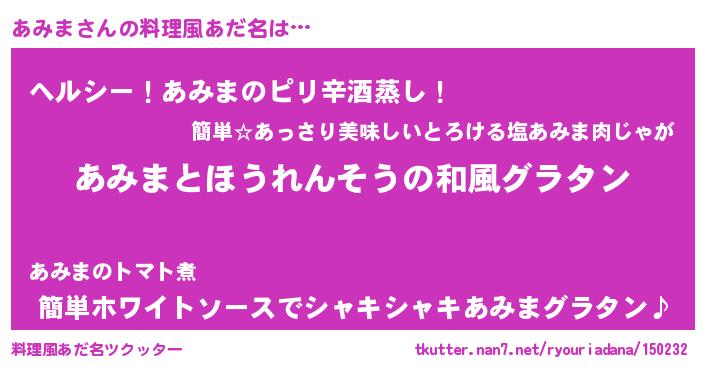 | ヘコむあだ名 | 『あみっぺ』『あみま(小並感)』 |
