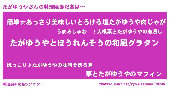 | ヒーロー風カッコイイあだ名 | 『ネオタガユウヤ』『スーパータガユウヤ』 |