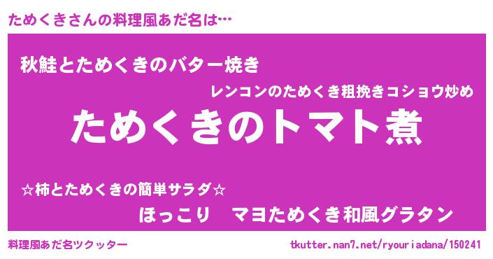 | 女子向けラノベタイトル風あだ名 | 『ためくき夫妻のなれそめ』 |