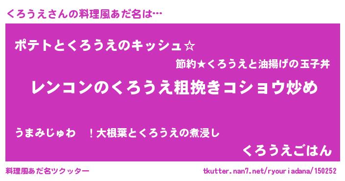 | ピコ太郎風あだ名 | 『クロ十郎』『クコ一郎』『ピク四郎』 |