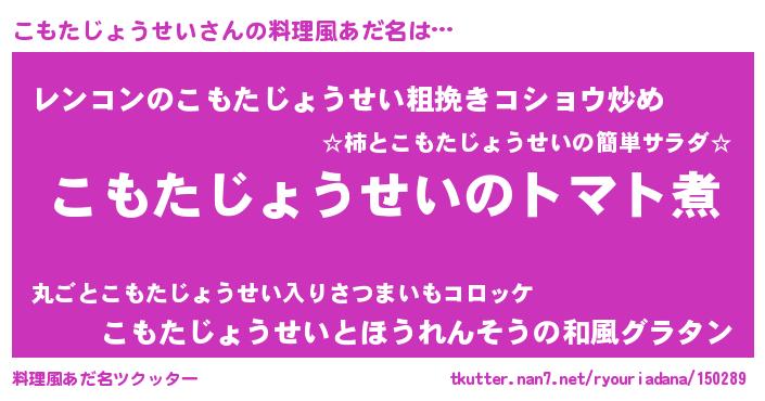 | 男性向けラノベタイトル風あだ名 | 『おまえをオタクにしてやるから、俺をこもたじょうせいにしてくれ! 』 |