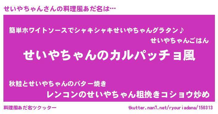 | 意味不明あだ名 | 『住所不定無職せいやちゃん(6歳)』 |