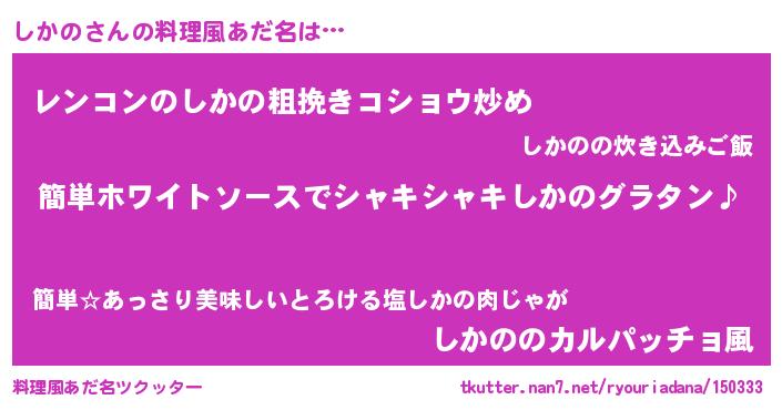 | 女子向けラノベタイトル風あだ名 | 『しかの様がみてる』 |