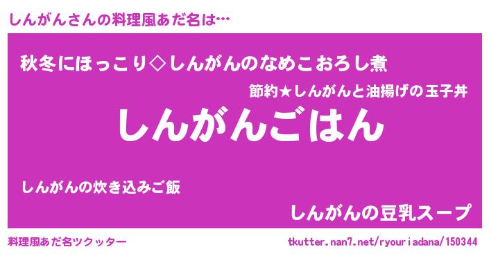 | 男性向けラノベタイトル風あだ名 | 『シンガンスレイヤー』『しんがんの憂鬱』 |