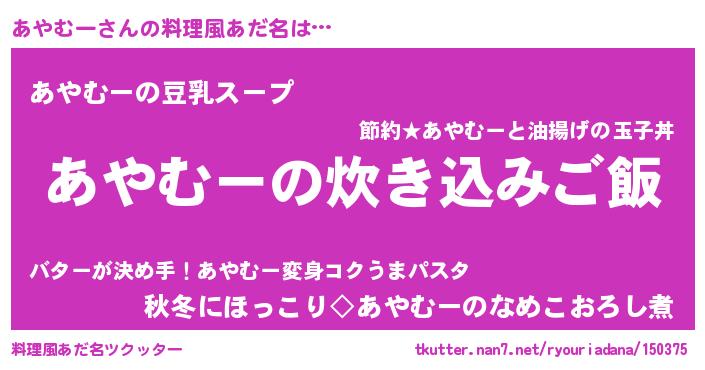| ピコ太郎風あだ名 | 『アヤ六郎』『アコ史郎』『アア太郎』 |