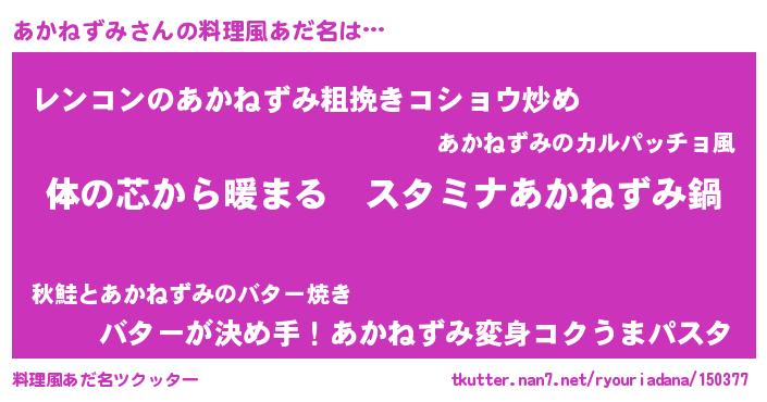 | 女子向けラノベタイトル風あだ名 | 『あかねずみの雑貨屋さん』 |
