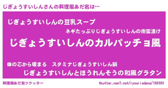 | 意味不明あだ名 | 『住所不定無職じぎょうすいしん(56歳)』 |