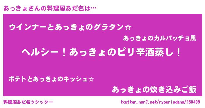 | 女子向けラノベタイトル風あだ名 | 『闇のあっきょ』『あっきょ伯爵の花嫁』 |
