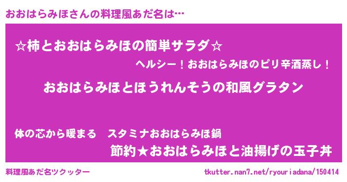 | 胡散臭い通販商品みたいなあだ名 | 『億万長者になれる霊験あらたかなお札…その名も「おおはらみほ」』 |