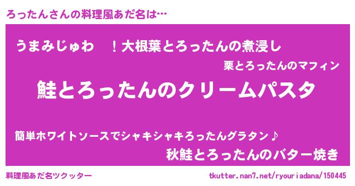 | ヘコむあだ名 | 『レバニラ』『ろったん(遠い目)』 |