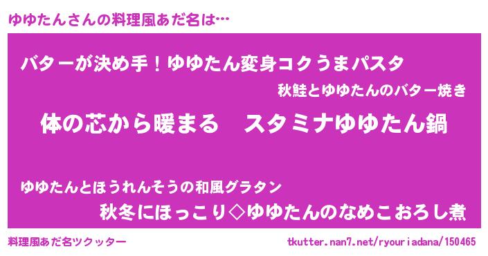 | ポケモン風あだ名 | 『ユユタダネ』『ユックウザ』 |