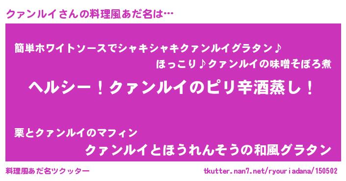 | 意味不明あだ名 | 『自称クァンルイ』『ペロリンクァンルイ』 |