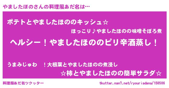 | 男性向けラノベタイトル風あだ名 | 『Re:やましたほのから始める異世界生活』 |