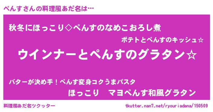 | 自動車の名前っぽいあだ名 | 『ペクア』『ランペンギーニ』『ペンR』 |