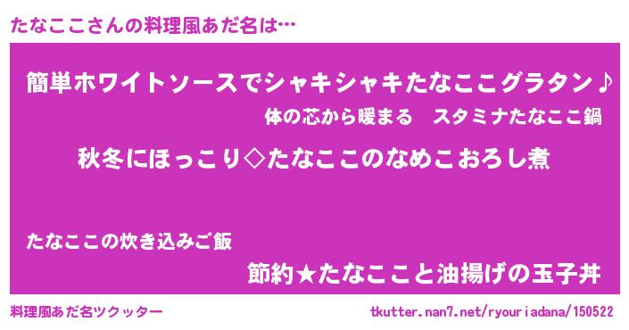 | 男性向けラノベタイトル風あだ名 | 『たなここに滅ぼされるだけの簡単なお仕事です』 |