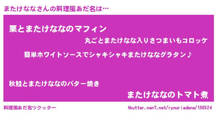 | ポケモン風あだ名 | 『ヒマタケナナ』『マタゴンZ』 |