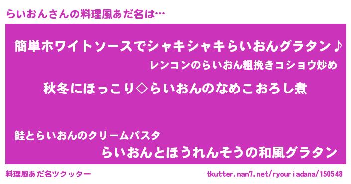 | ヘコむあだ名 | 『らいを』『らいおん(遠い目)』 |