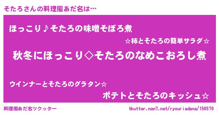 | 胡散臭い通販商品みたいなあだ名 | 『億万長者になれるブレスレット…その名も「そたろ」』 |
