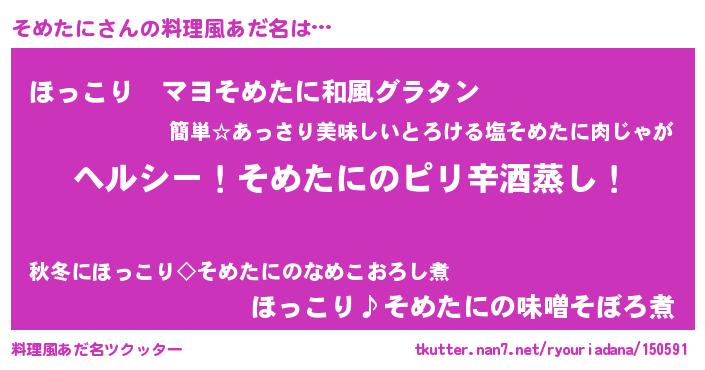 | 男性向けラノベタイトル風あだ名 | 『Re:そめたにから始める異世界生活』 |