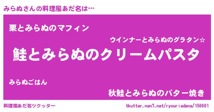 | 女子向けラノベタイトル風あだ名 | 『死神みらぬの再婚』『みらぬの契約王妃』 |