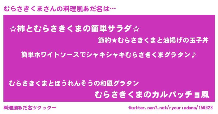 | 男性向けラノベタイトル風あだ名 | 『むらさきくまの嫁は女の子じゃないと思った?』 |