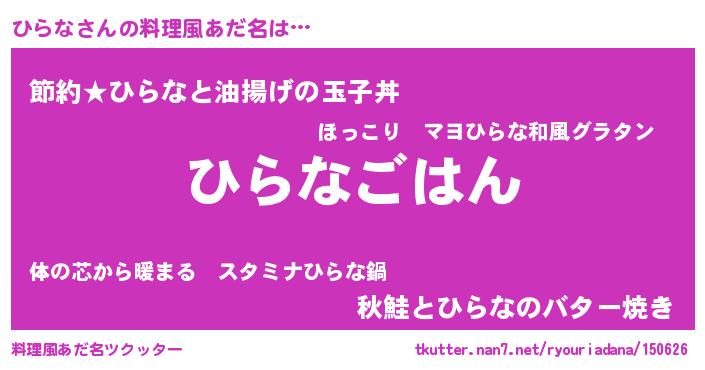 | 意味不明あだ名 | 『めかぶ科ひらな属』『ペロリンひらな』 |