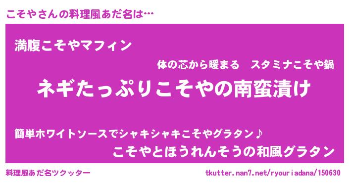 | 男性向けラノベタイトル風あだ名 | 『コソヤアートオンライン』 |