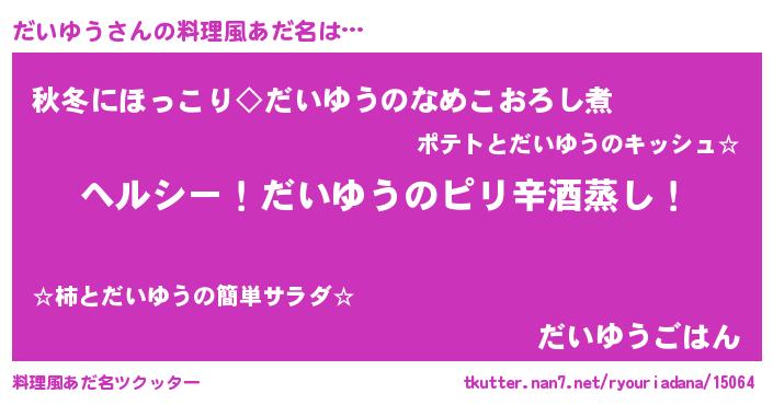 | 男性向けラノベタイトル風あだ名 | 『Re:だいゆうから始める異世界生活』 |