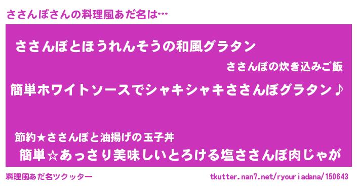 | 意味不明あだ名 | 『とにかく怪しいささんぼ』 |