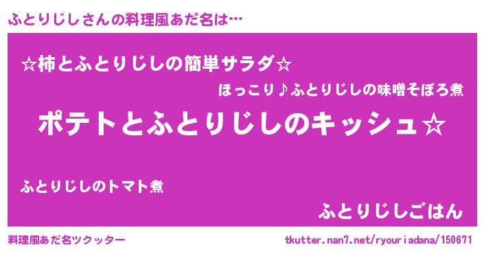 | 女子向けラノベタイトル風あだ名 | 『ふとりじしの卵を拾いまして』 |