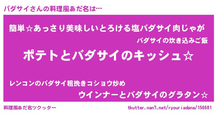 | 胡散臭い通販商品みたいなあだ名 | 『伝統あるサプリメント…その名も「バダサイ」』 |