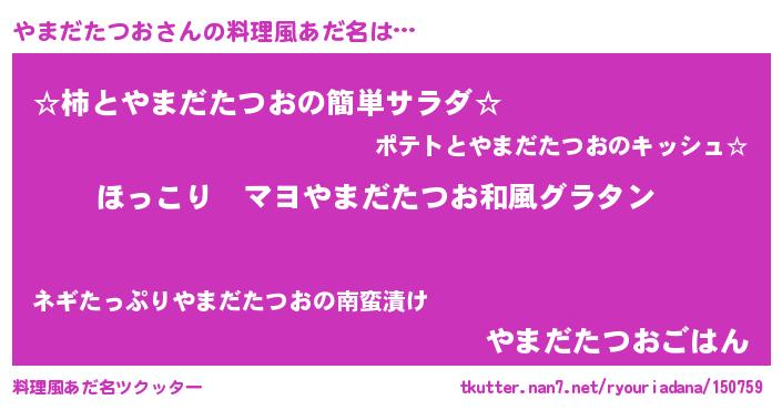 | 男性向けラノベタイトル風あだ名 | 『この素晴らしい世界にやまだたつおを!』 |