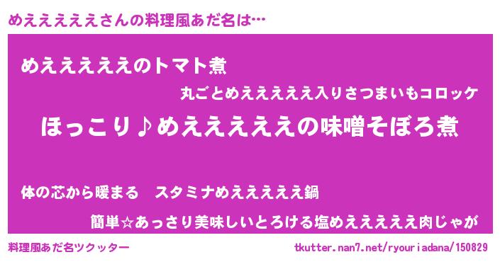 | 男性向けラノベタイトル風あだ名 | 『めえええええの憂鬱』 |