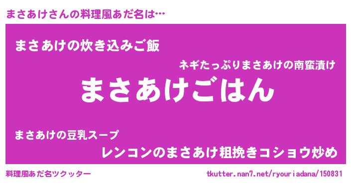 | 男性向けラノベタイトル風あだ名 | 『マサアケスレイヤー』 |