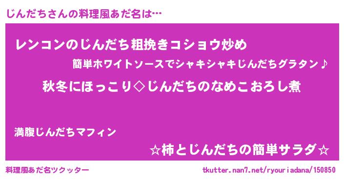 | 意味不明あだ名 | 『自称じんだち』『永久保存じんだち』 |